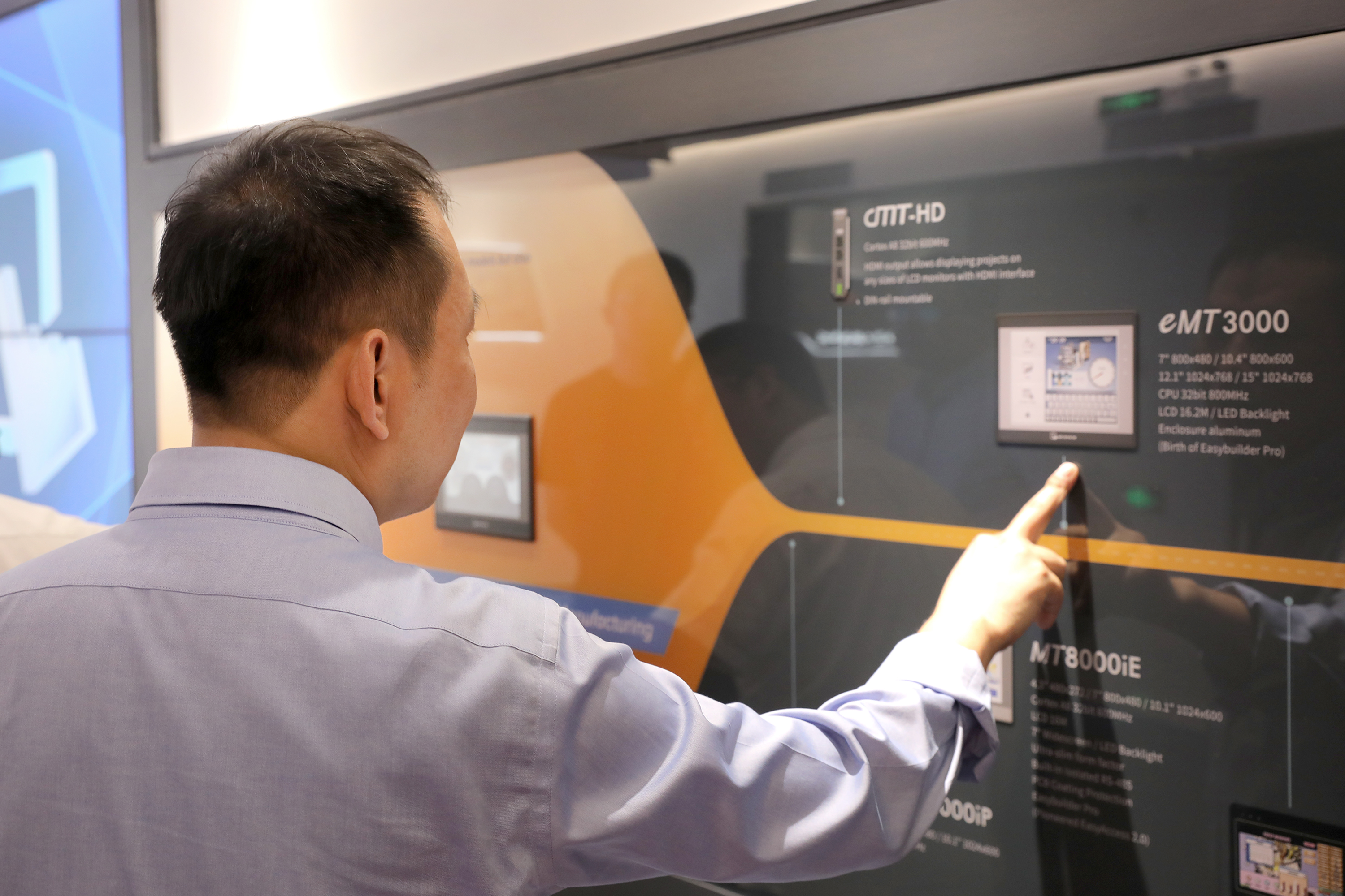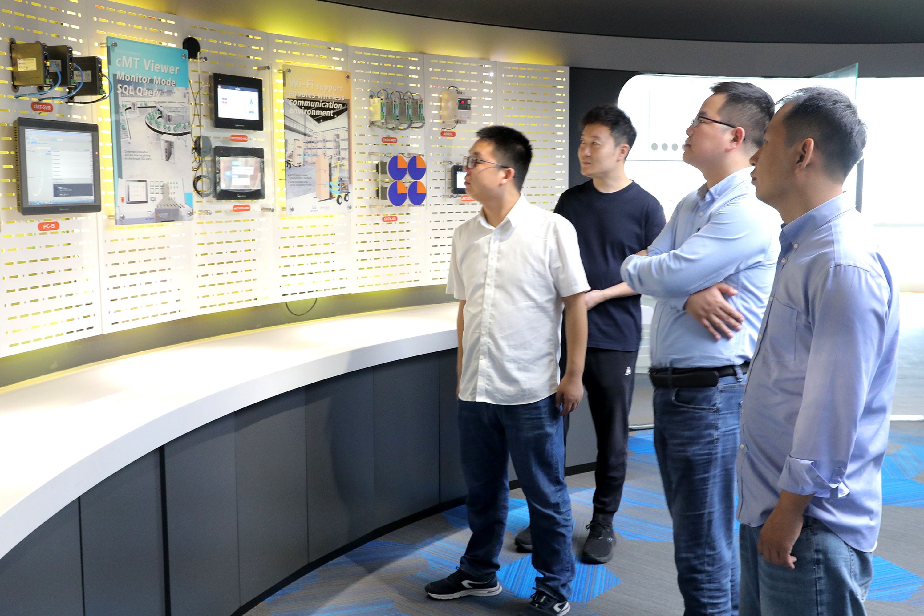 參觀過程中,劉成林向來訪領導介紹了威綸通企業發展歷程以及新一代cMT X系列云端監控HMI產品,通過現場演示與互動體驗,展示威綸通完全運用自主控制系統(HMI+I/O)結合CODESYS軟PLC方案實現的對現場能源管理、照明、空調、窗簾、電源、音響等設備進行管理的自動化智能辦公系統。讓HMI與CODESYS相結合的優勢展露無余。CODESYS(歐德神思)對威綸通的創新能力和研發實力給予了高度的認可。